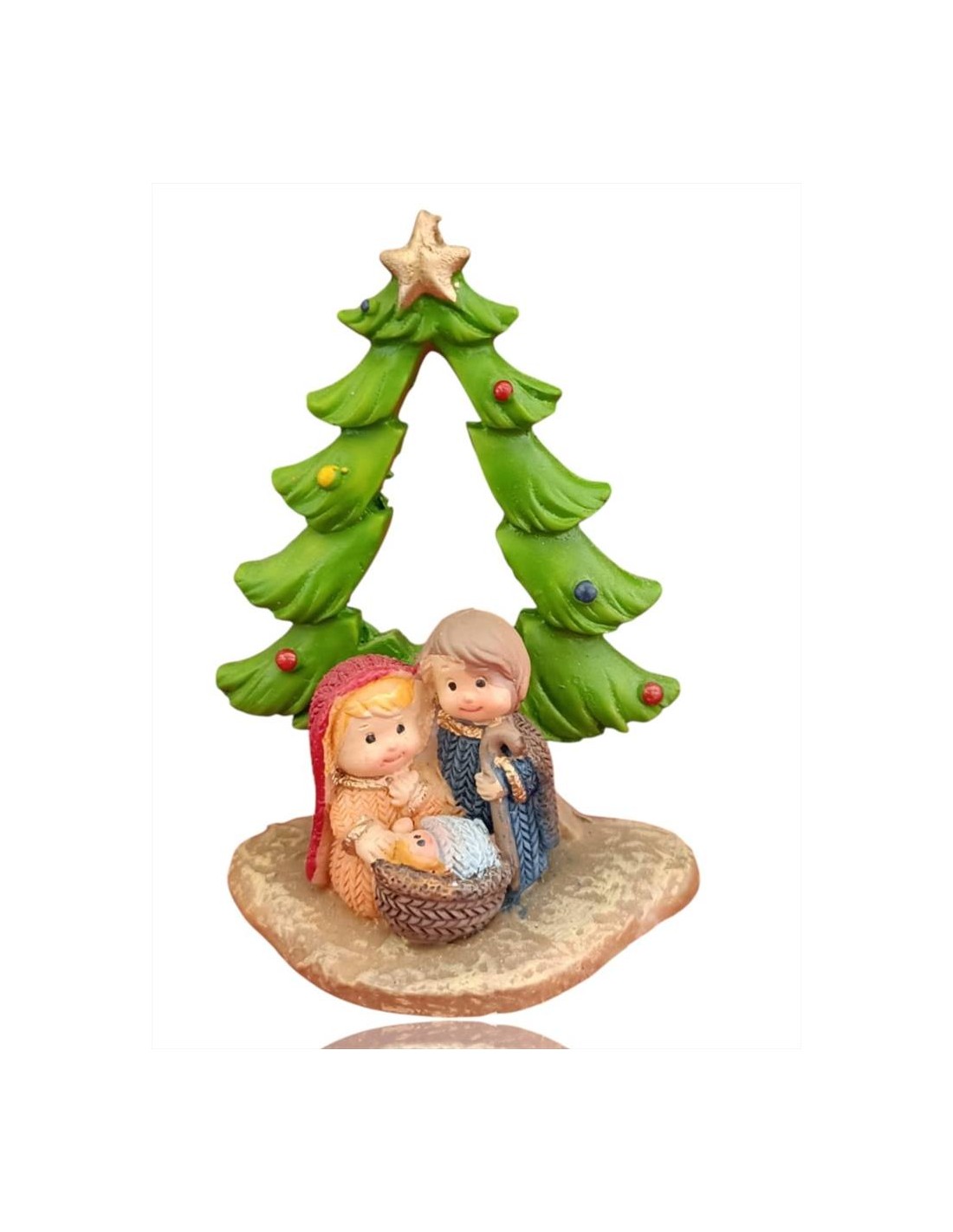 Natività con albero, cm 8x3,5x6,5. Un piccolo presepe che racchiude tutta la magia e la spiritualità del Natale.