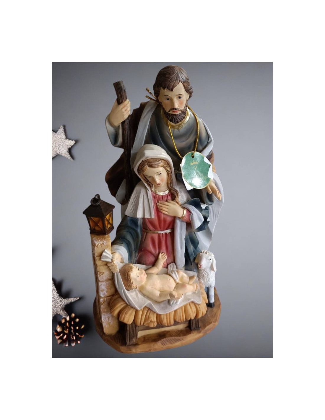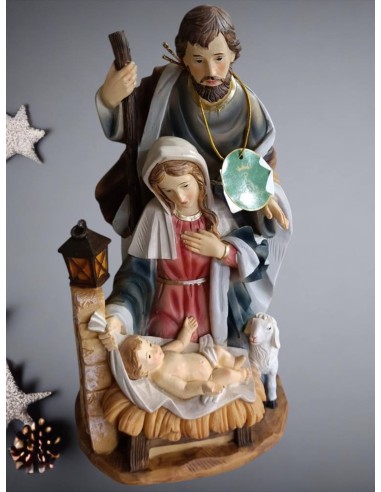 Elegante gruppo Natività in resina da 24 cm, codice PB18485, caratterizzato da finiture curate e stile classico. Perfetto per presepi e decorazioni natalizie.
