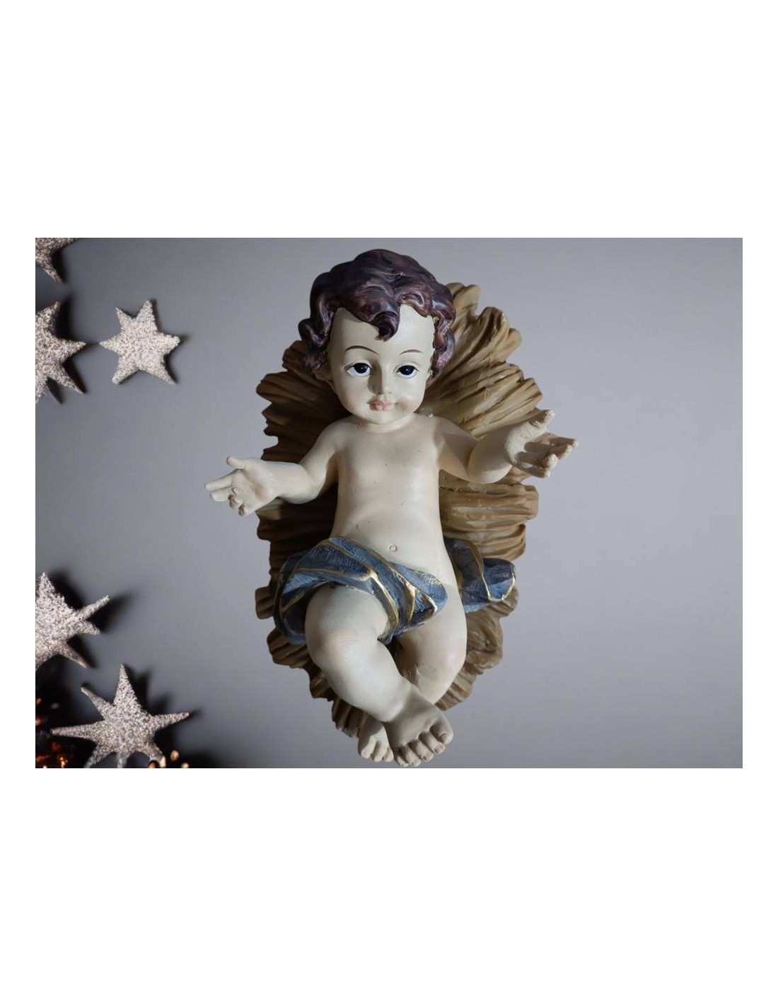 Gesù Bambino su mangiatoia in resina, misura media, modello PB-6274 di Paben. Un elemento tradizionale e finemente dettagliato, ideale per completare presepi di varie dimensioni.