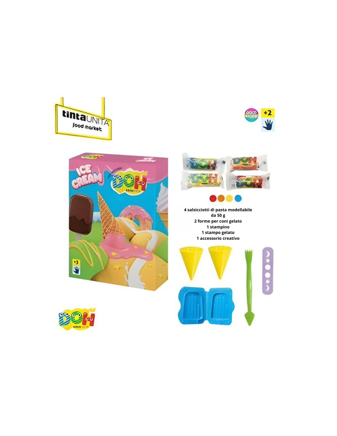 Tinta UnitaSet creativo Doh Tinta Unita Ice Cream per realizzare gelati di fantasia con pasta modellabile e stampi inclusi. Divertimento creativo per bambini.