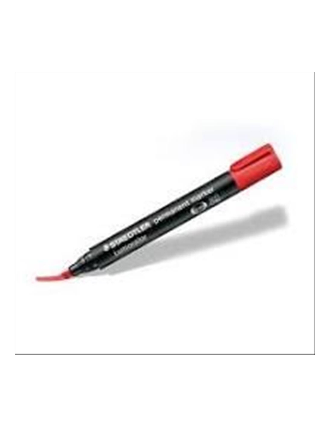 Marcatore indelebile Staedtler Lumocolor a scalpello rosso: tratto preciso e intenso per scrivere su plastica, vetro, metallo e molte altre superfici.