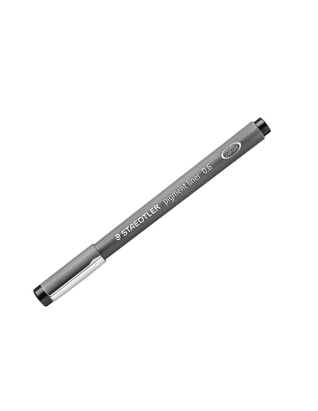 Penna rapidografo Staedtler Pigment Liner nera con punta da 0.6 mm, ideale per un tratto deciso e controllato.
