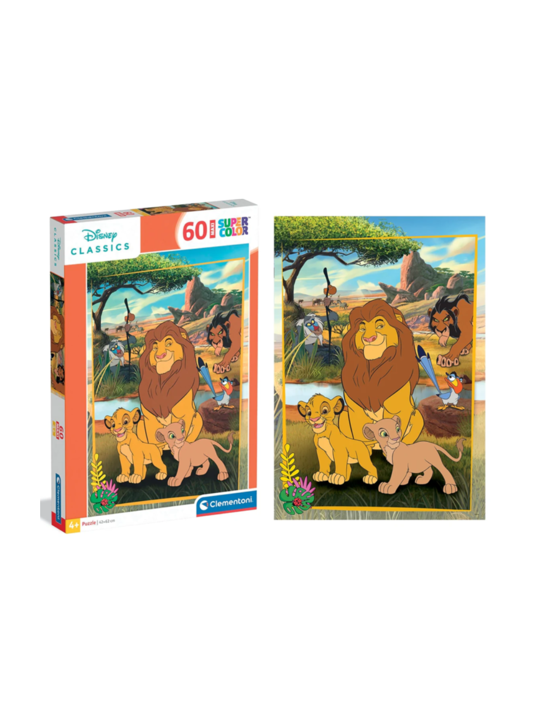 Puzzle Disney Classic Il Re Leone da 60 pezzi, con immagini colorate dei personaggi più amati. Ideale per bambini e momenti di gioco educativo. 4+